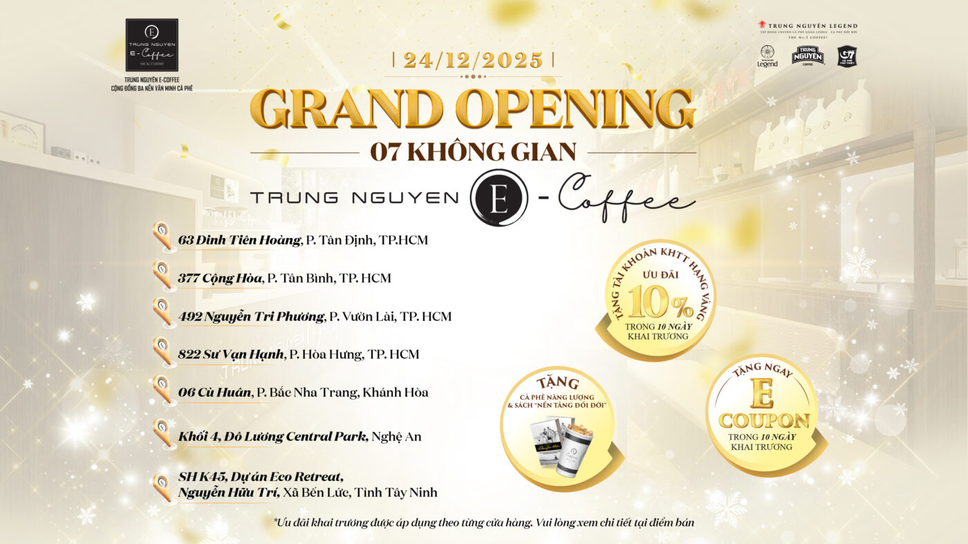 Trên hành trình nâng tầm giá trị cà phê và văn hóa cà phê Việt Nam, Công ty Cổ phần Trung Nguyên Franchising vừa ghi thêm một dấu mốc đáng tự hào của Trung Nguyên E-Coffee khi chính thức khai trương đồng loạt 07 không gian mới tại những vị trí đắc địa ở các […]