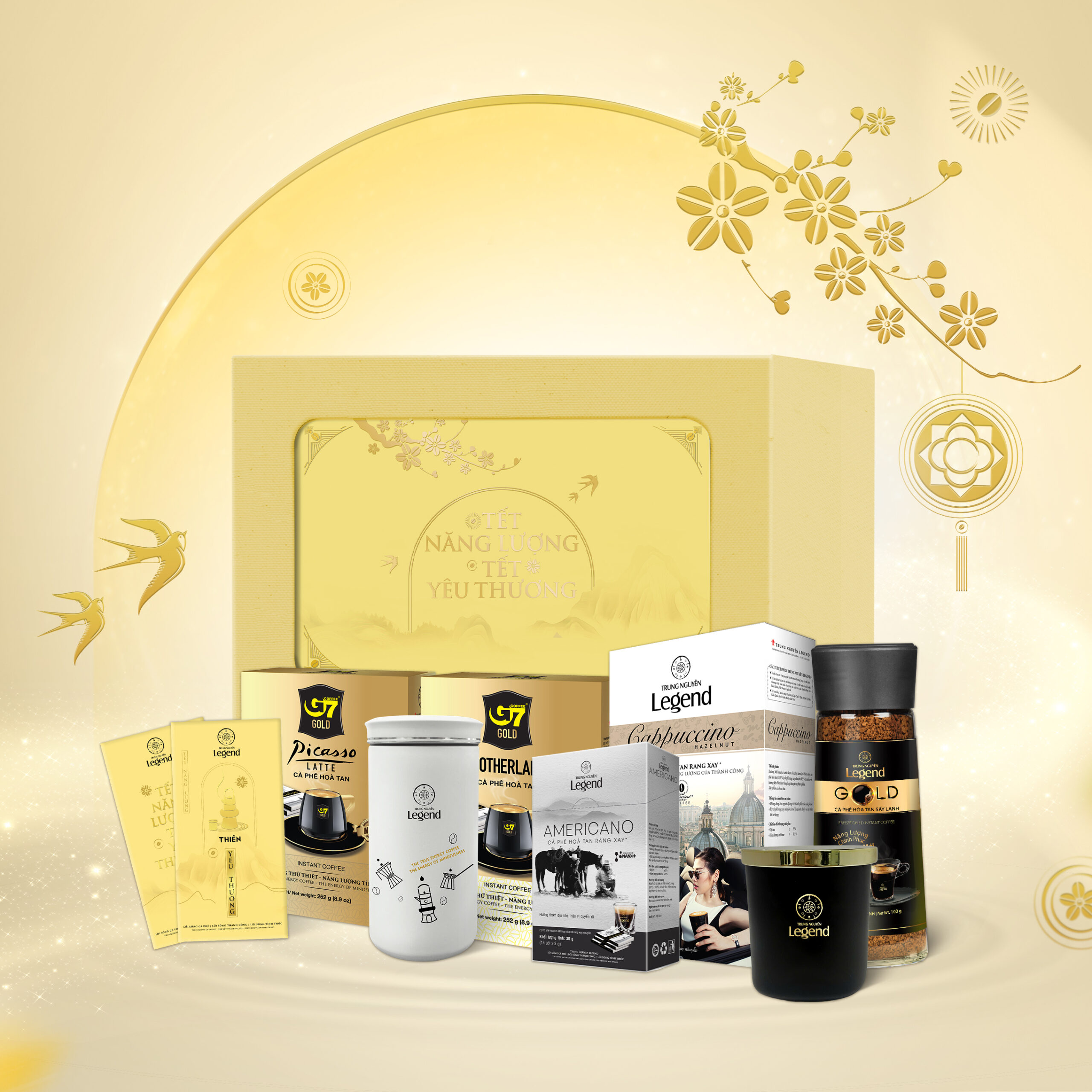 Điểm nổi bật của phiên bản Tết này là kết cấu hai tầng độc đáo, sắp xếp tinh tế giữa các sản phẩm cà phê Trung Nguyên Legend cùng phụ kiện cao cấp chọn lọc. Hộp quà không chỉ mang đến trải nghiệm thưởng thức cà phê tròn vị, mà còn gửi lời chúc năm mới an khang, tràn đầy năng lượng và hạnh phúc.