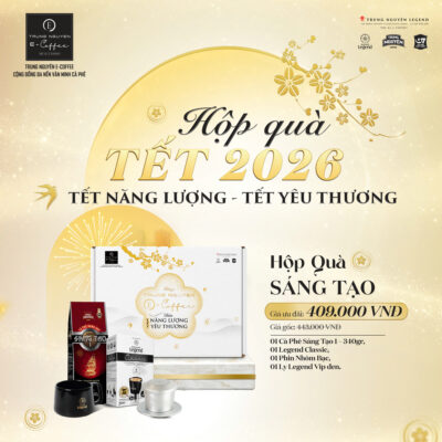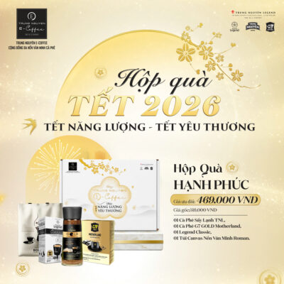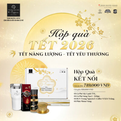 Khám phá bộ hộp quà Tết Trung Nguyên E-Coffee 2026 với thiết kế trắng – vàng kim tinh tế, ba phiên bản Kết Nối, Hạnh Phúc, Sáng Tạo. Món quà trao yêu thương, gửi năng lượng khởi đầu năm mới rực rỡ.